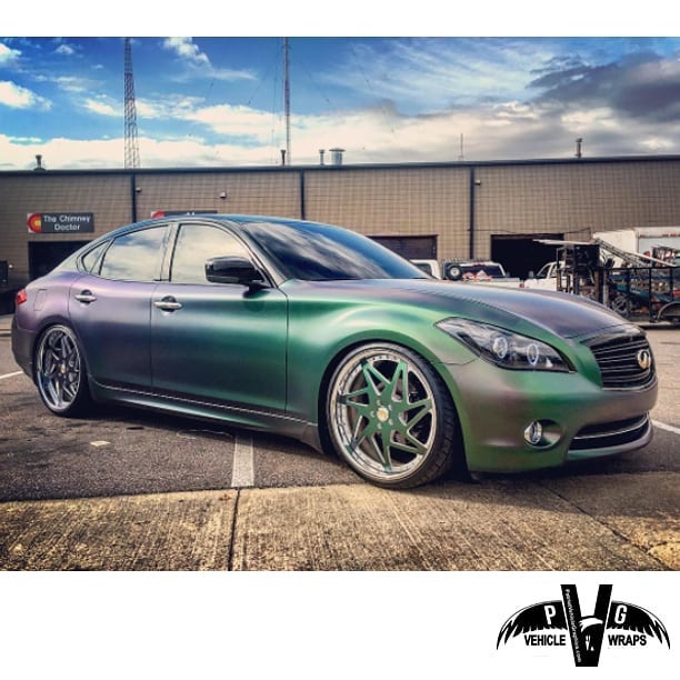 Infinitim35 Wrapped In Avery Satin Urban Jungle Silver Green Purple Shade Shifting Vinyl Vinyl Wrap 3m Avery Dennison Vinyl Wrap Cars Vehicles